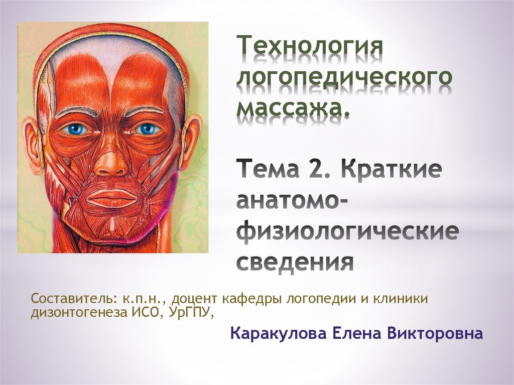 1. Технология логопедического массажа. Тема 2. Краткие анатомо-физиологические сведения