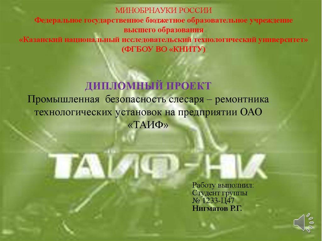 Промышленная безопасность слесаря – ремонтника технологических установок на предприятии ОАО «ТАИФ»