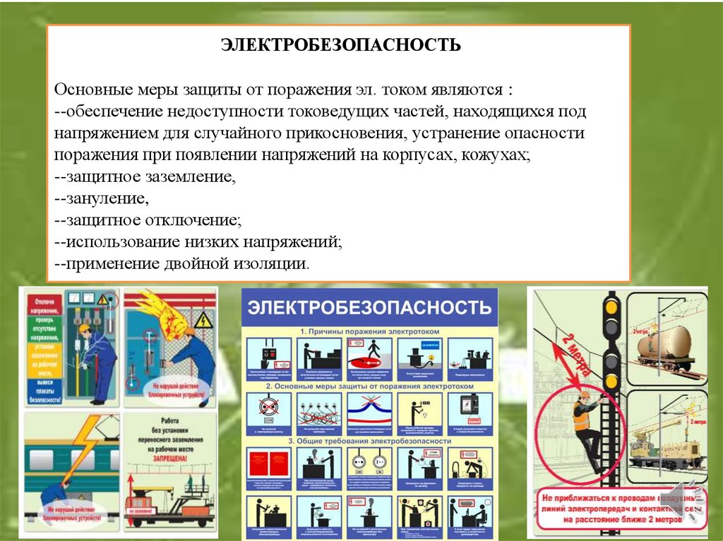 ЭЛЕКТРОБЕЗОПАСНОСТЬОсновные меры защиты от поражения эл. током являются :