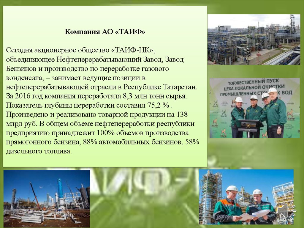 Компания АО «ТАИФ»Сегодня акционерное общество «ТАИФ-НК»,