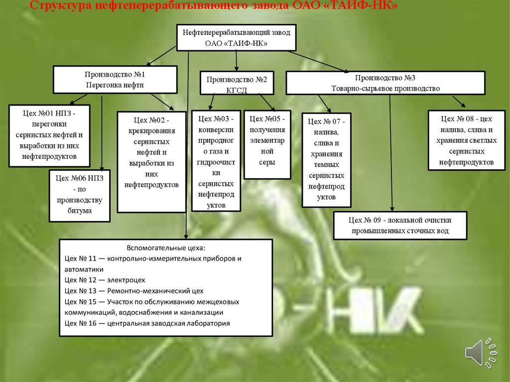Структура нефтеперерабатывающего завода ОАО «ТАИФ-НК»Нефтеперерабатывающий завод