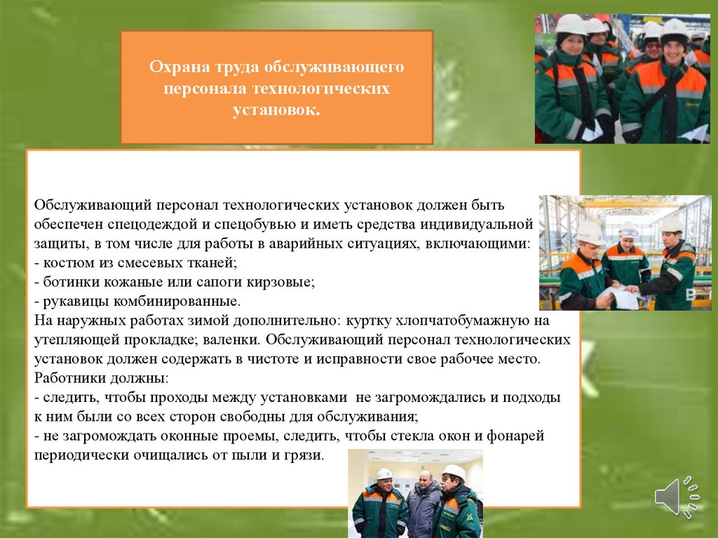утепляющей прокладке; валенки. Обслуживающий персонал технологических