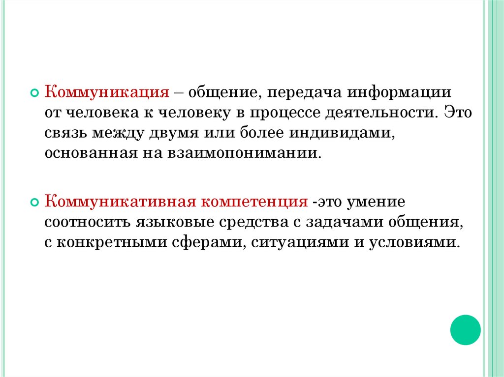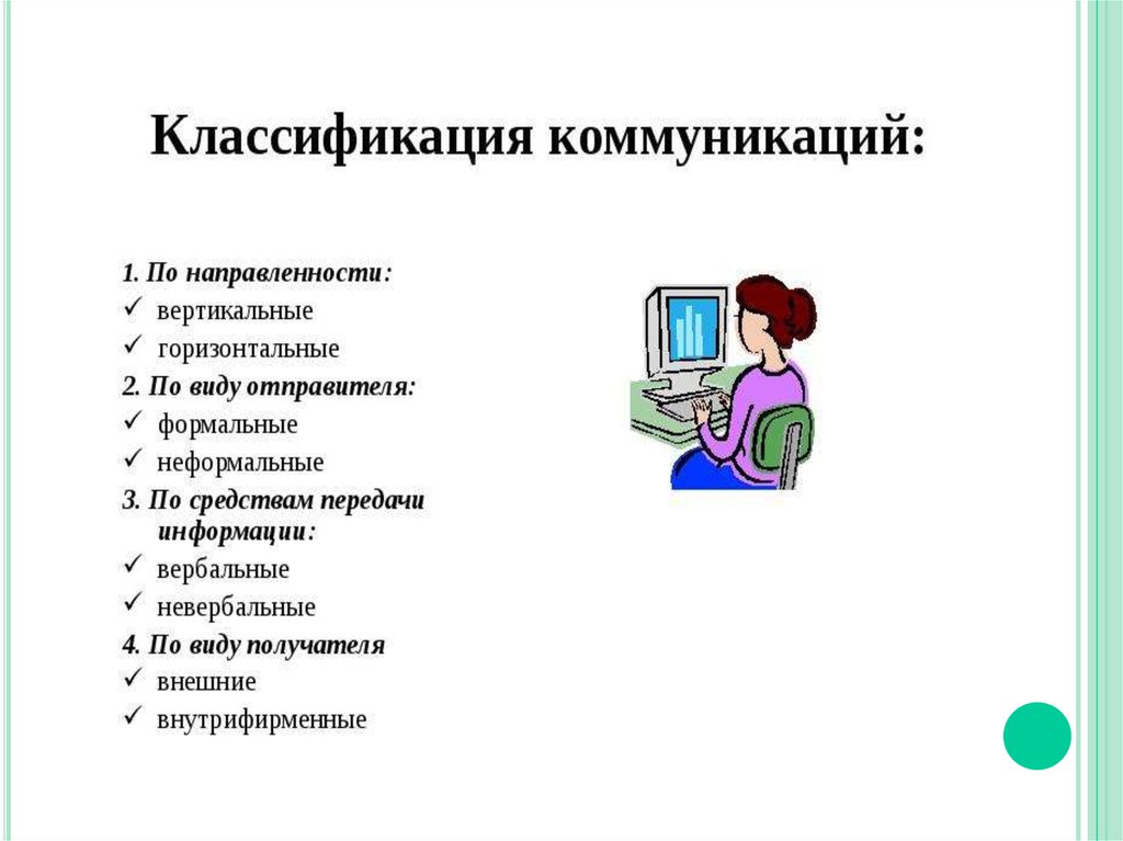 Коммуникация – общение, передача информацииот человека к человеку в процессе деятельности. Это