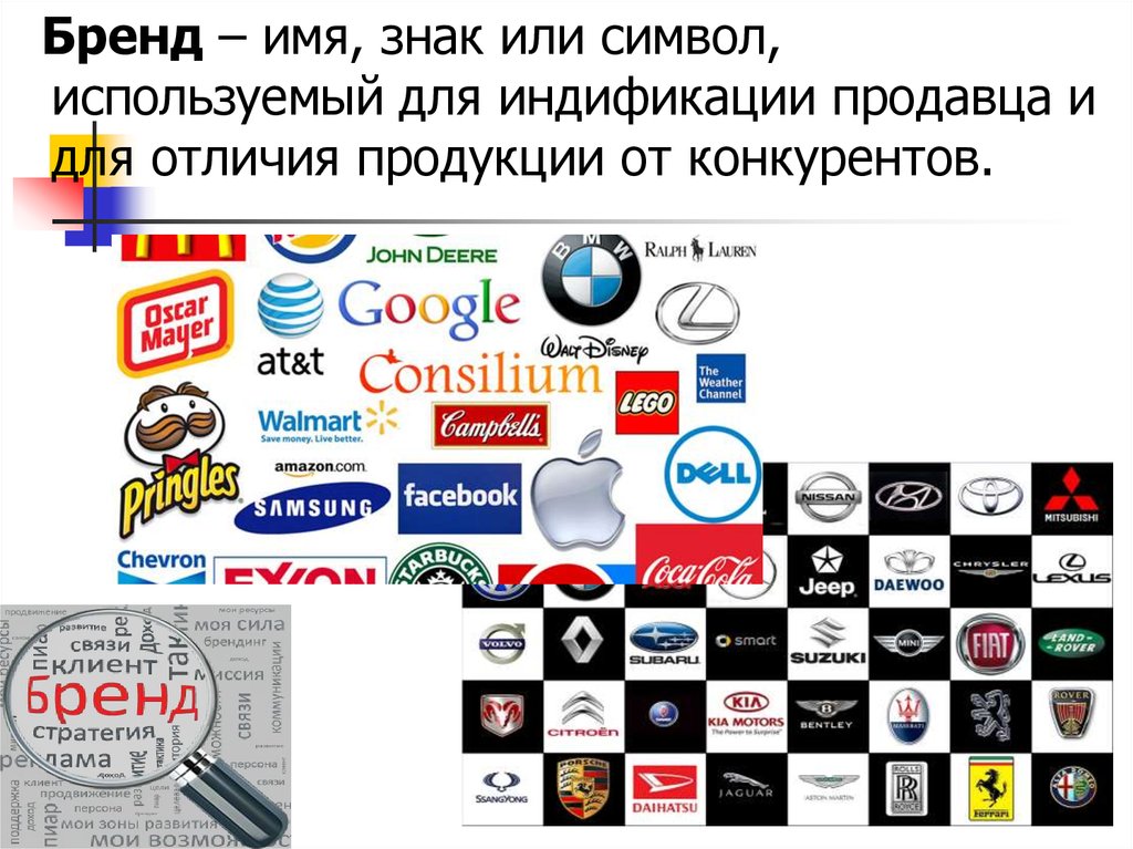 Бренд – имя, знак или символ,используемый для индификации продавца и
