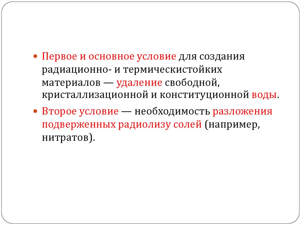 Первое и основное условие для созданиярадиационно- и термическистойких