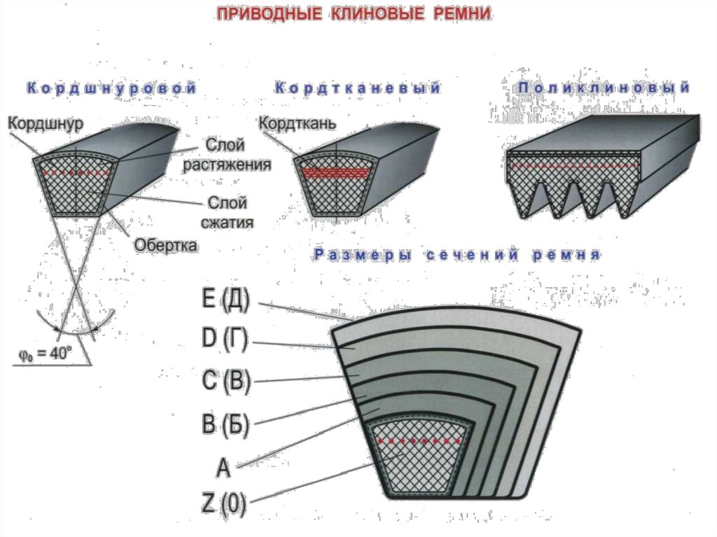 Клиновые ремни, имеющиетрапециевидное поперечное сечение.