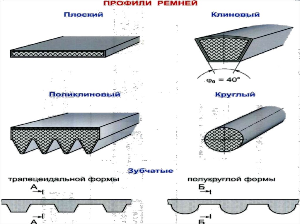 Плоские ремни, имеющие поперечное сечение ввиде узкого прямоугольника.