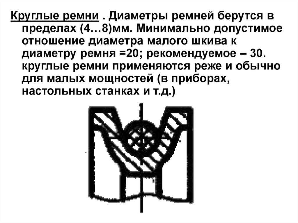 Круглые ремни . Диаметры ремней берутся впределах (4…8)мм. Минимально допустимое