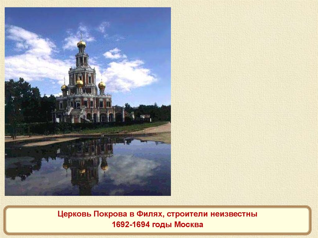 Церковь Покрова в Филях, строители неизвестны1692-1694 годы Москва