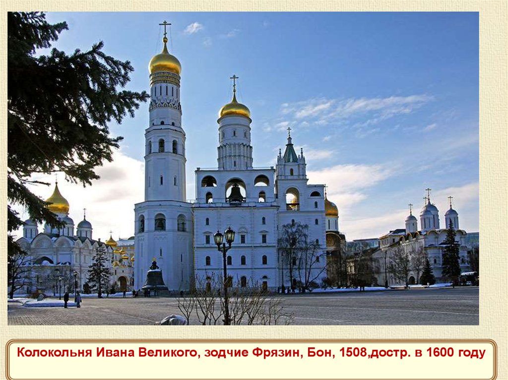Колокольня Ивана Великого, зодчие Фрязин, Бон, 1508,достр. в 1600 году24.