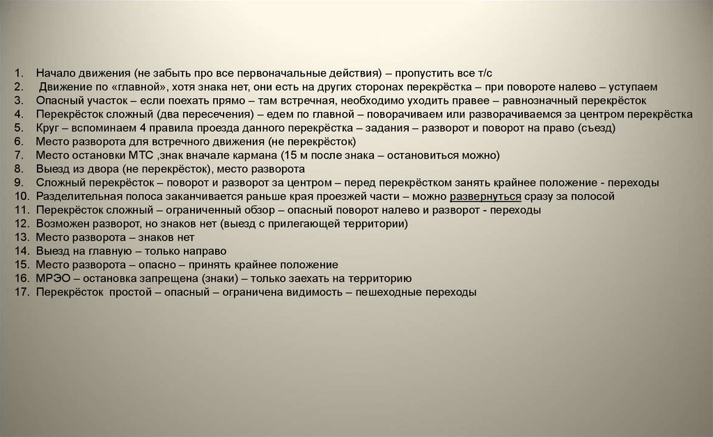 Сложный перекрёсток – поворот и разворот за центром – перед перекрёстком занять крайнее положение - переходы