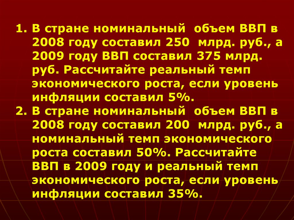 1. В стране номинальный объем ВВП в2008 году составил 250 млрд. руб., а