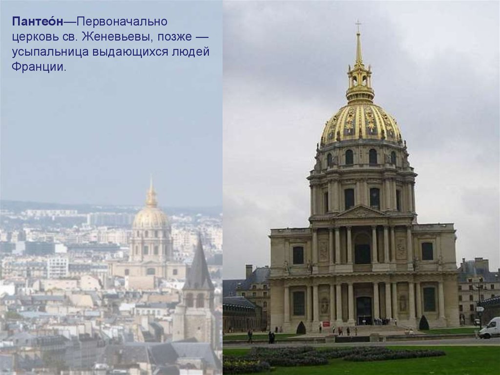 Пантео́н—Первоначальноцерковь св. Женевьевы, позже —