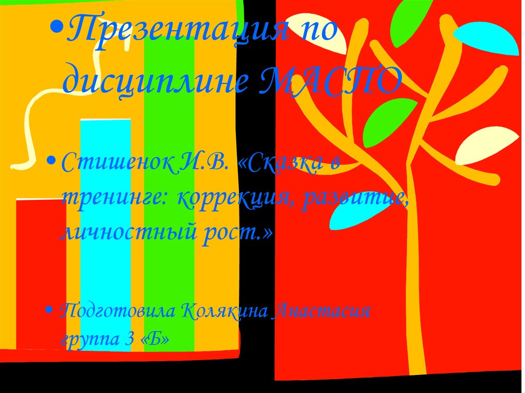 Стишенок И.В. «Сказка в тренинге: коррекция, развитие, личностный рост»