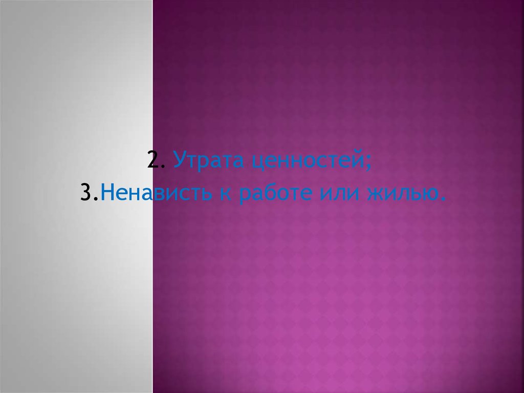 2. Утрата ценностей;3.Ненависть к работе или жилью.