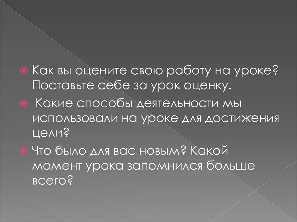 Как вы оцените свою работу на уроке?Поставьте себе за урок оценку.