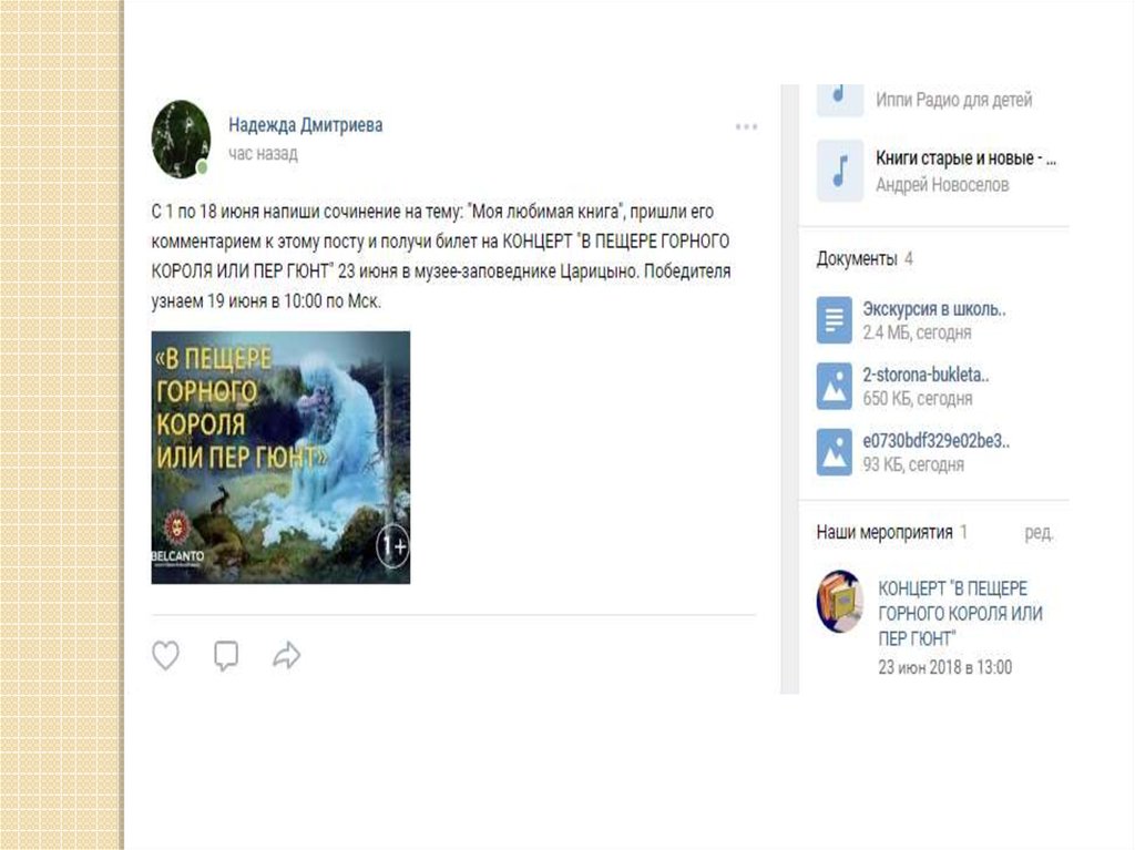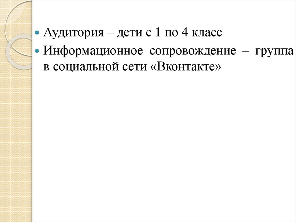 Аудитория – дети с 1 по 4 классИнформационное сопровождение – группа