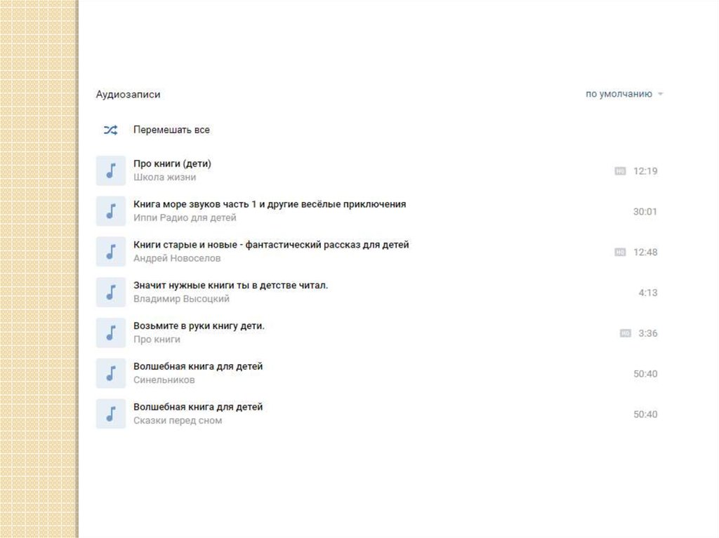 8. Аудиозаписи: «Про книги», «Книга: «Море звуков и