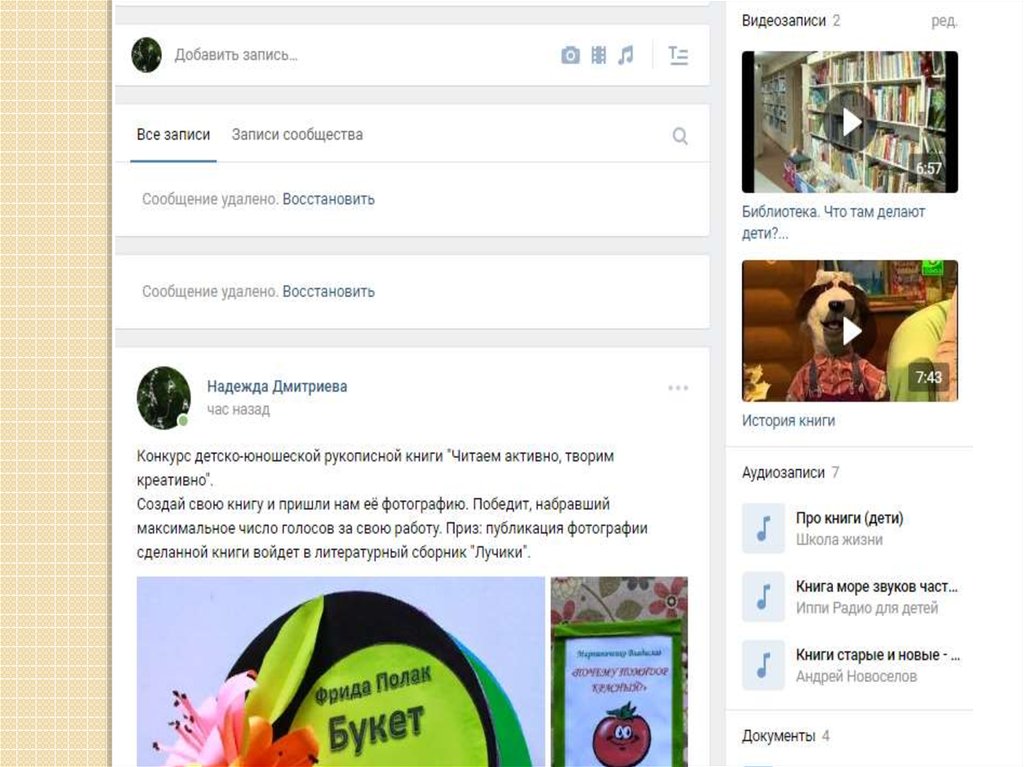7. Видеозаписи: «Библиотека. Что там делают дети»,