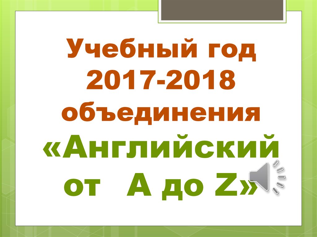Учебный год 2017-2018 объединения «Английский от А до Z»