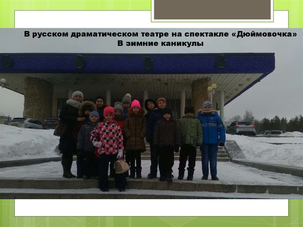 В русском драматическом театре на спектакле «Дюймовочка»В зимние каникулы