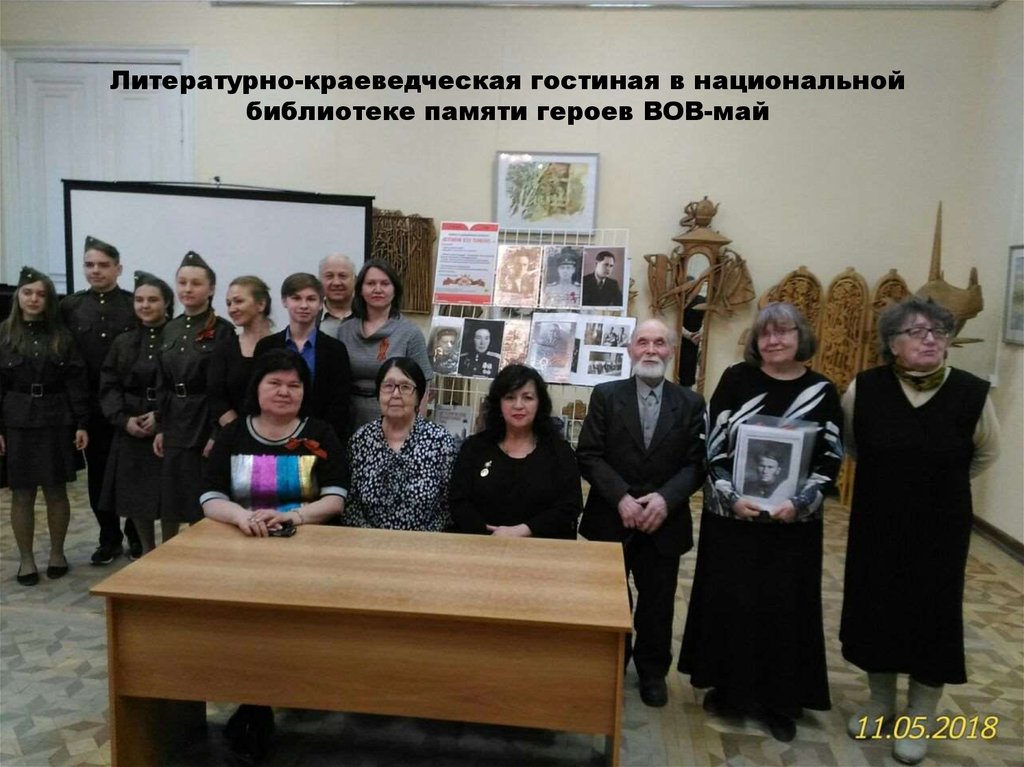 Литературно-краеведческая гостиная в национальнойбиблиотеке памяти героев ВОВ-май