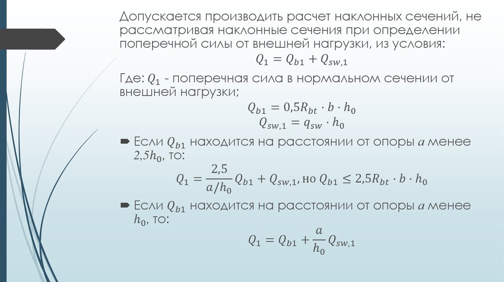 Расчет изгибаемых элементов по наклонным сечениям