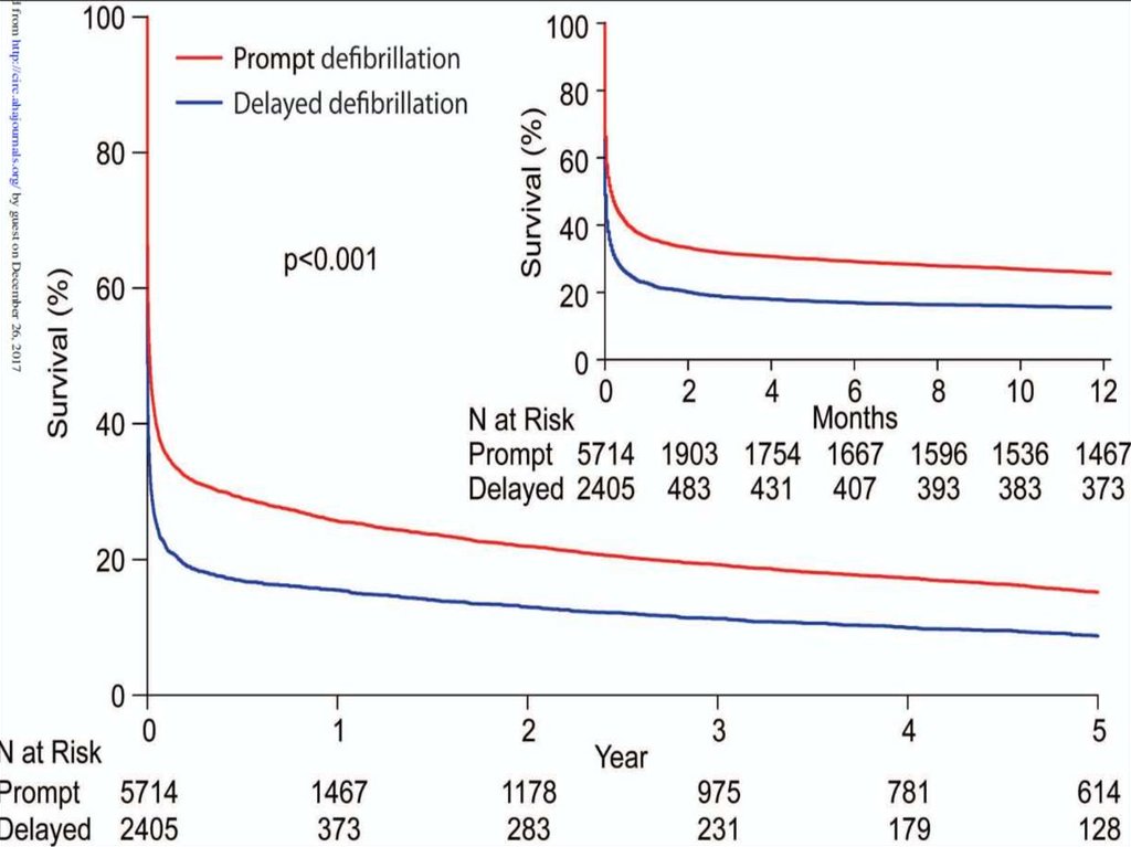 • Среди пациентов с внутрибольничной остановкой сердцана фоне нарушений ритма, требующих дефибрилляции: