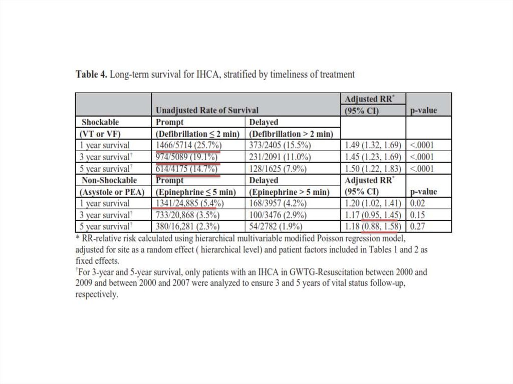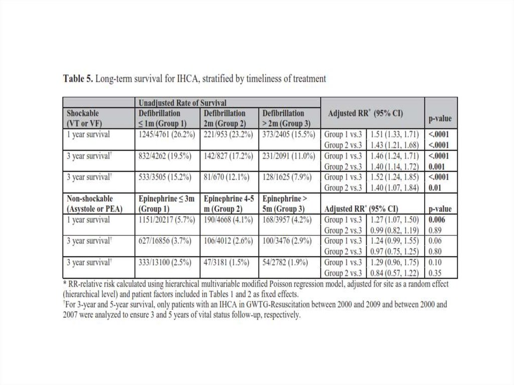 внутрибольничной остановки сердца. Для 3-летней и 5-летней выживаемости
