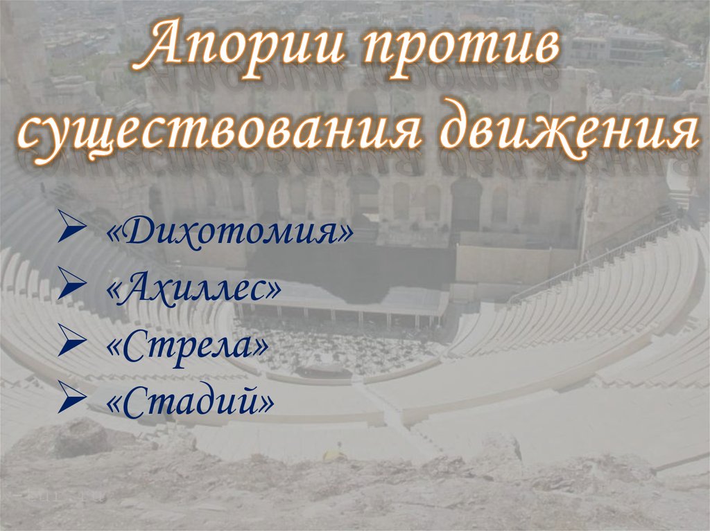 Зенон Элейский. Апории против существования движения. Апории против существования множества