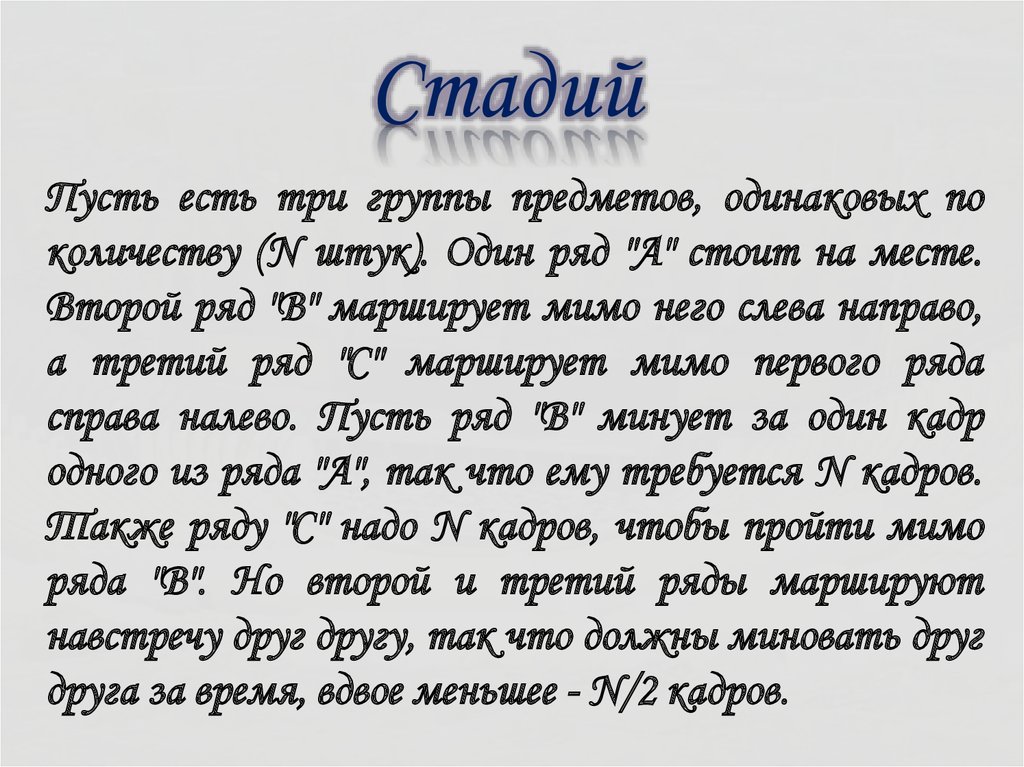 СтадийПусть есть три группы предметов, одинаковых по
