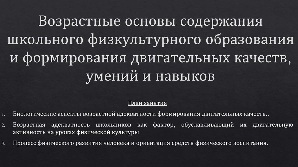 Возрастные основы содержания школьного физкультурного образования и формирования двигательных качеств, умений и навыков