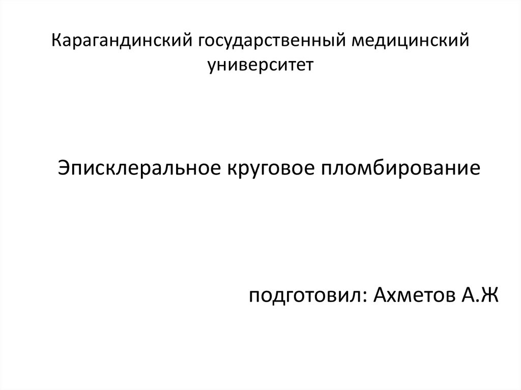 Эписклеральное круговое пломбированиеподготовил: Ахметов А.Ж