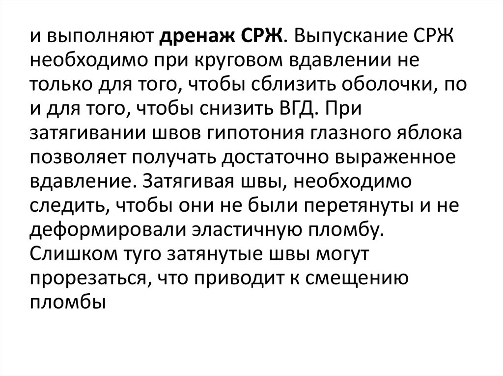 и выполняют дренаж СРЖ. Выпускание СРЖнеобходимо при круговом вдавлении не