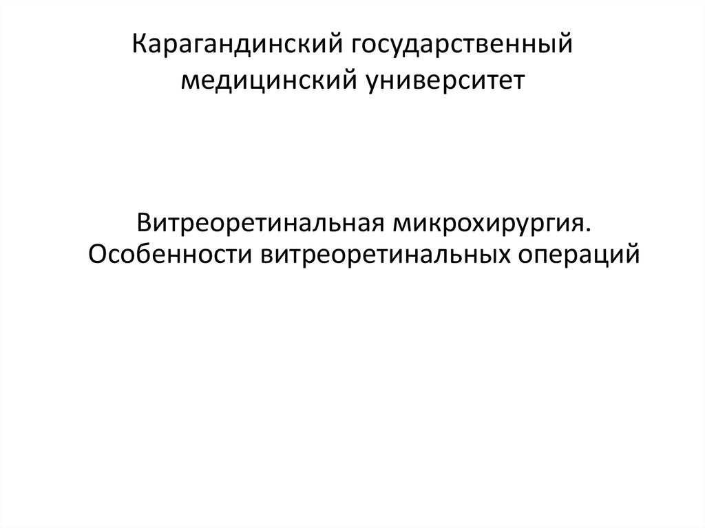 Витреоретинальная микрохирургия.Особенности витреоретинальных операций