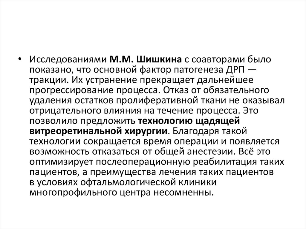 • Исследованиями М.М. Шишкина с соавторами былопоказано, что основной фактор патогенеза ДРП —