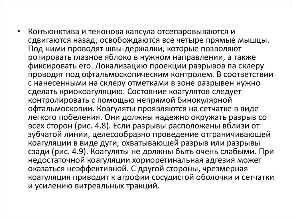 офтальмоскопии. Коагуляты проявляются на сетчатке в виде
