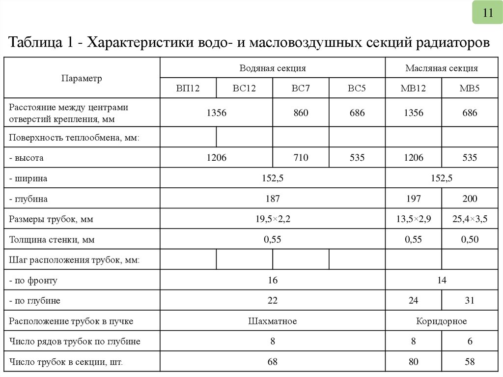 Конструктивные особенности водо- и масловоздушныхсекций радиаторов