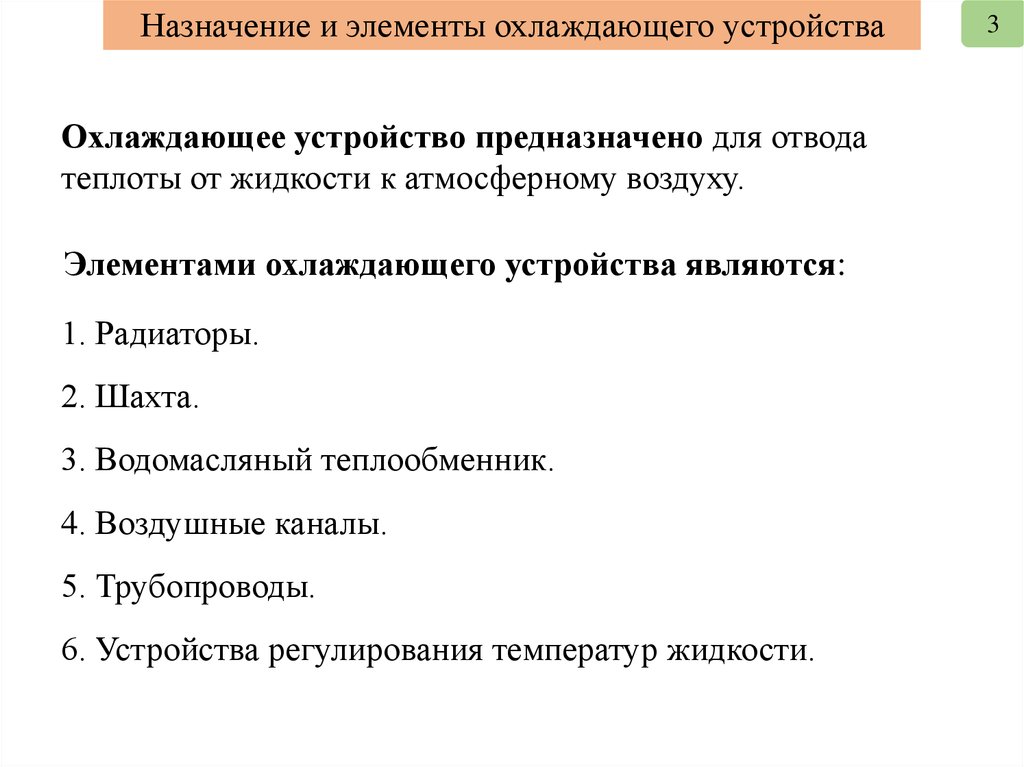 1. Назначение и элементы охлаждающего устройства.