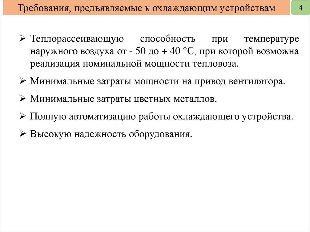 Требования, предъявляемые к охлаждающим устройствам4