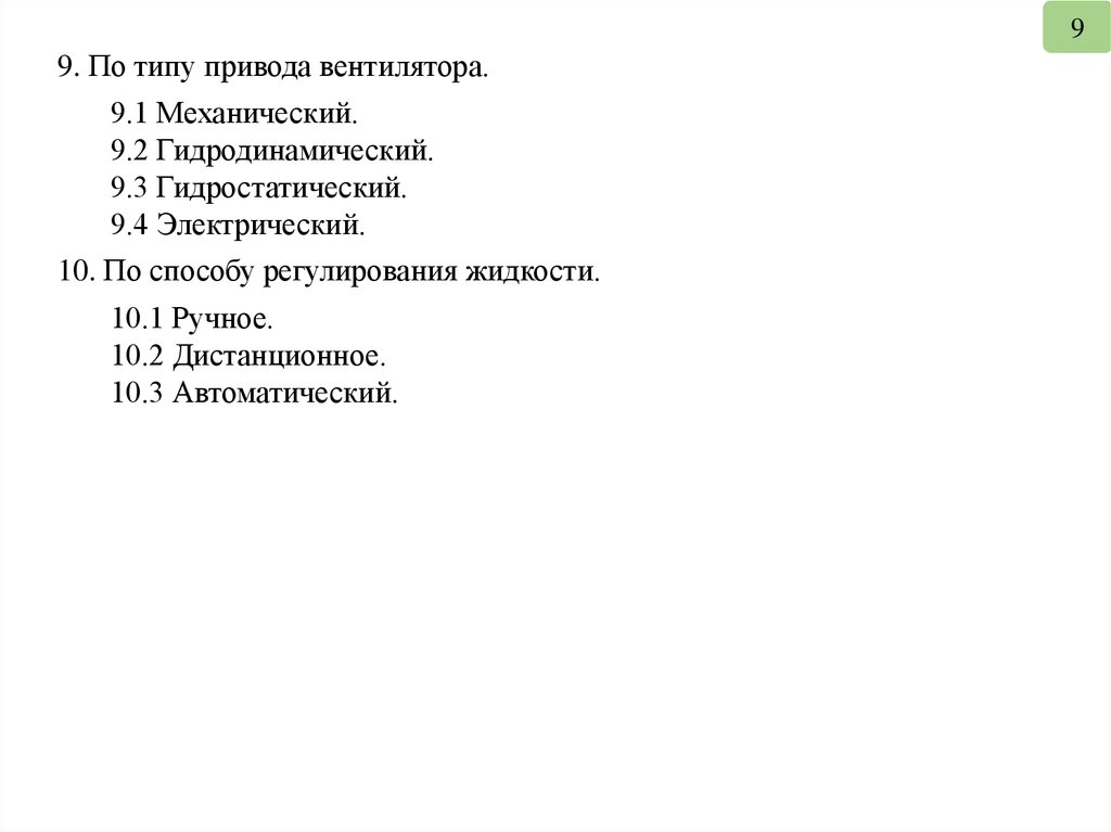 10. По способу регулирования жидкости.