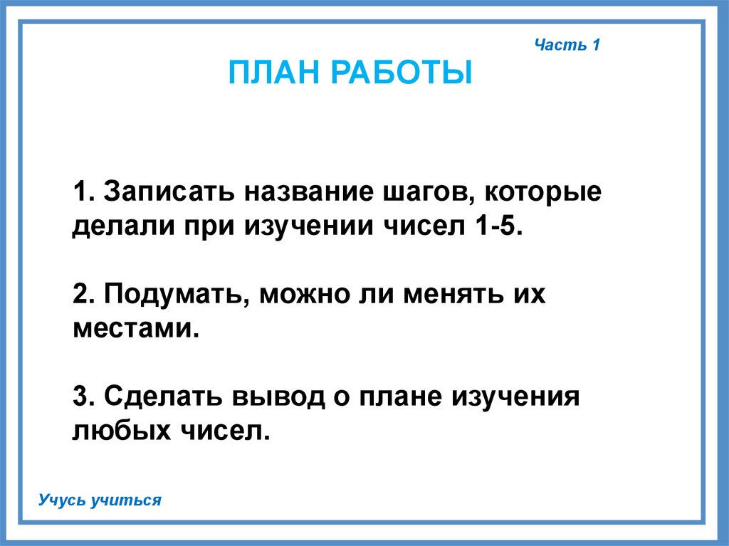 Построение плана изучения чисел