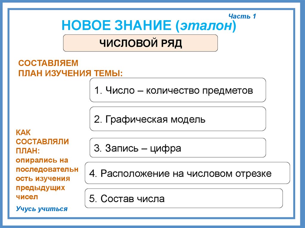 ТЕМА УРОКА:«Построение плана изучения чисел»