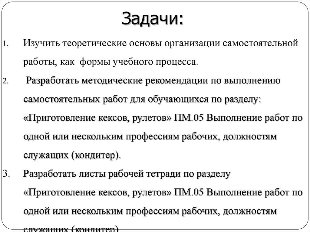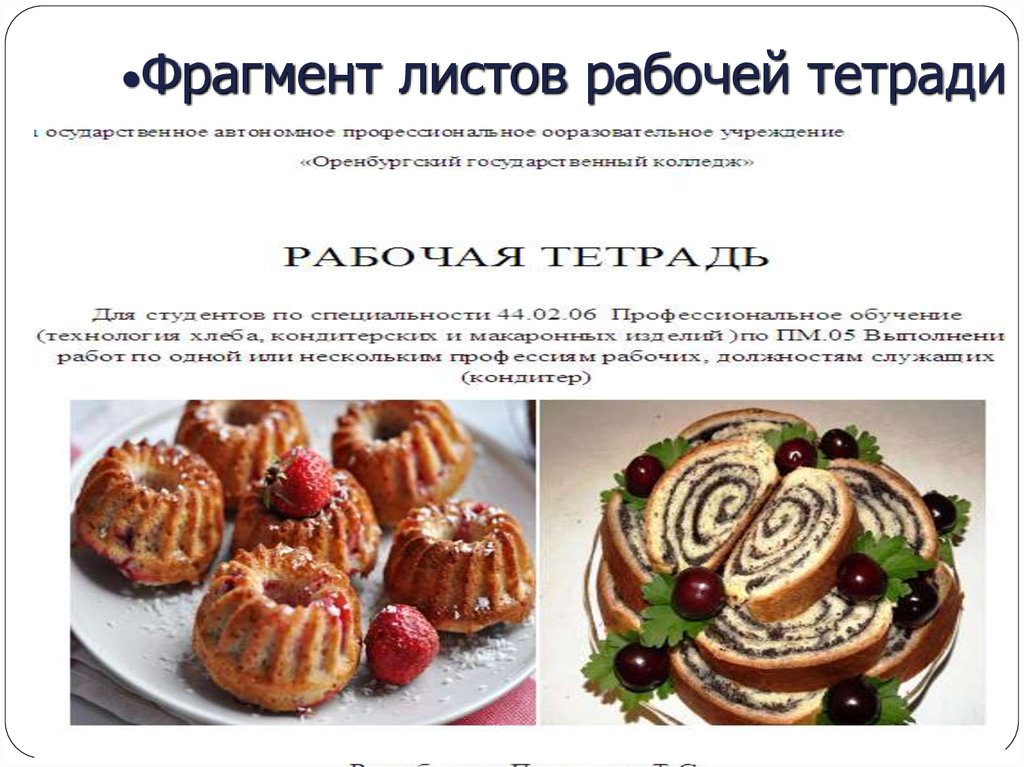 «Приготовление кексов, рулетов» ПМ.05 Выполнение работ по