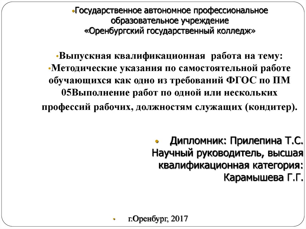Дипломник: Прилепина Т.С.