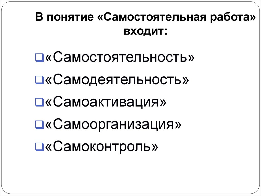 Изучить теоретические основы организации самостоятельной