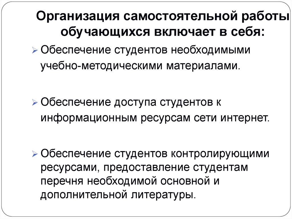 Организация самостоятельной работыобучающихся включает в себя: