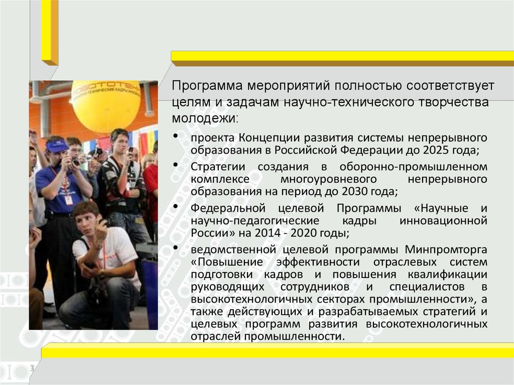 Программа мероприятий полностью соответствуетцелям и задачам научно-технического творчества