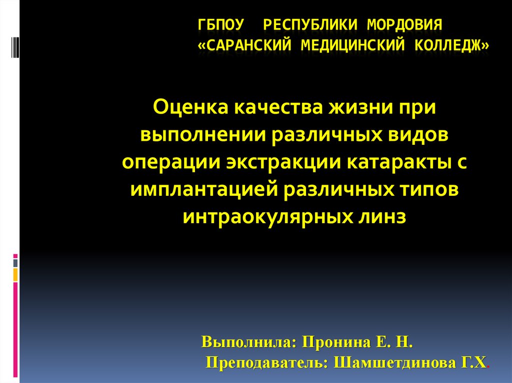 Оценка качества жизни при выполнении различных видов операции экстракции катаракты с имплантацией интраокулярных линз
