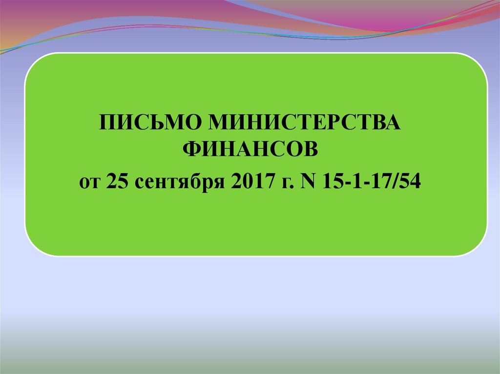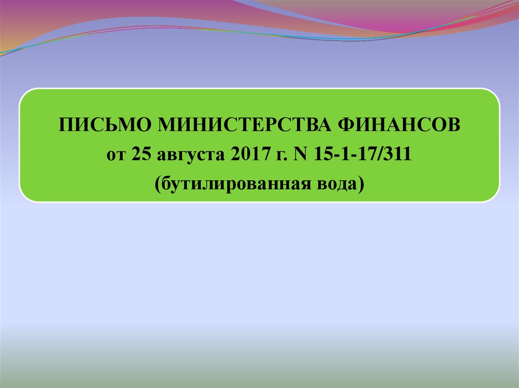 ПИСЬМО МИНИСТЕРСТВА ФИНАНСОВот 25 августа 2017 г. N 15-1-17/311